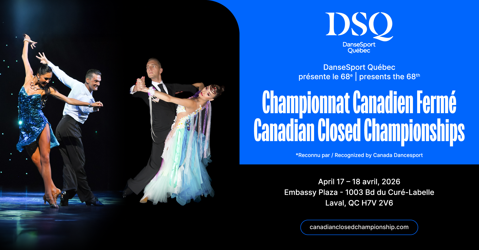 Le 68e Championnat Canadien Fermé de Danse Sportive samedi/dimanche – 17 & 18 avril, 2026